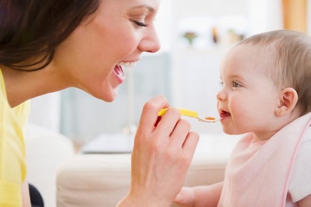 Trẻ sau khi được 6 tháng, mẹ nên cho bé ăn dặm để con tập...