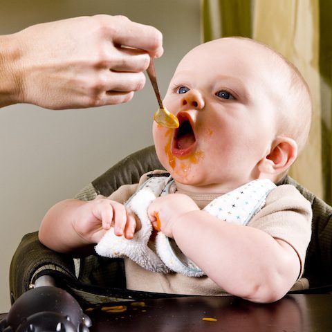- Bé từ 4 – 6 tháng tuổi nên ăn 2 bữa mỗi ngày, mỗi bữa 2-4 muỗng cà phê thức ăn.