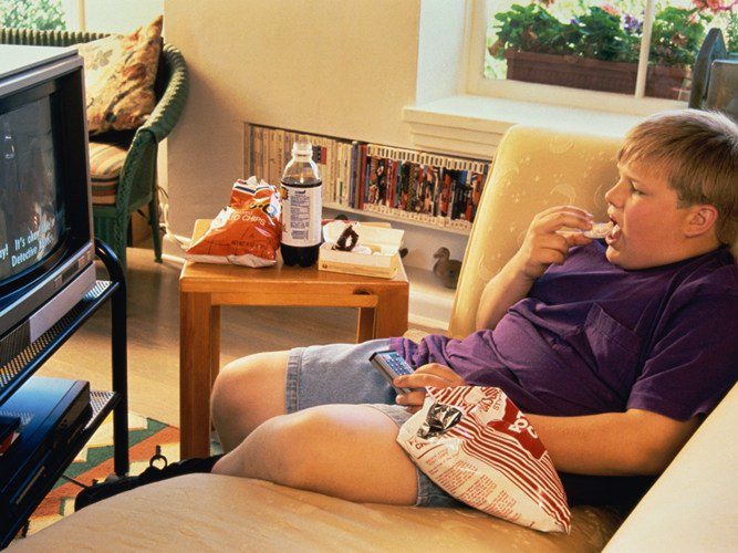Nhiều trẻ có thói quen vừa ăn vừa xem tivi. Những hình ảnh trên tivi khiến trẻ bị thu hút, quên vận động và cũng không hề để ý tới lượng thức ăn mà mình đưa vào mà ăn theo bản năng, thói quen. Lâu dần đây chính là nguyên nhân gây ra béo phì ở trẻ.